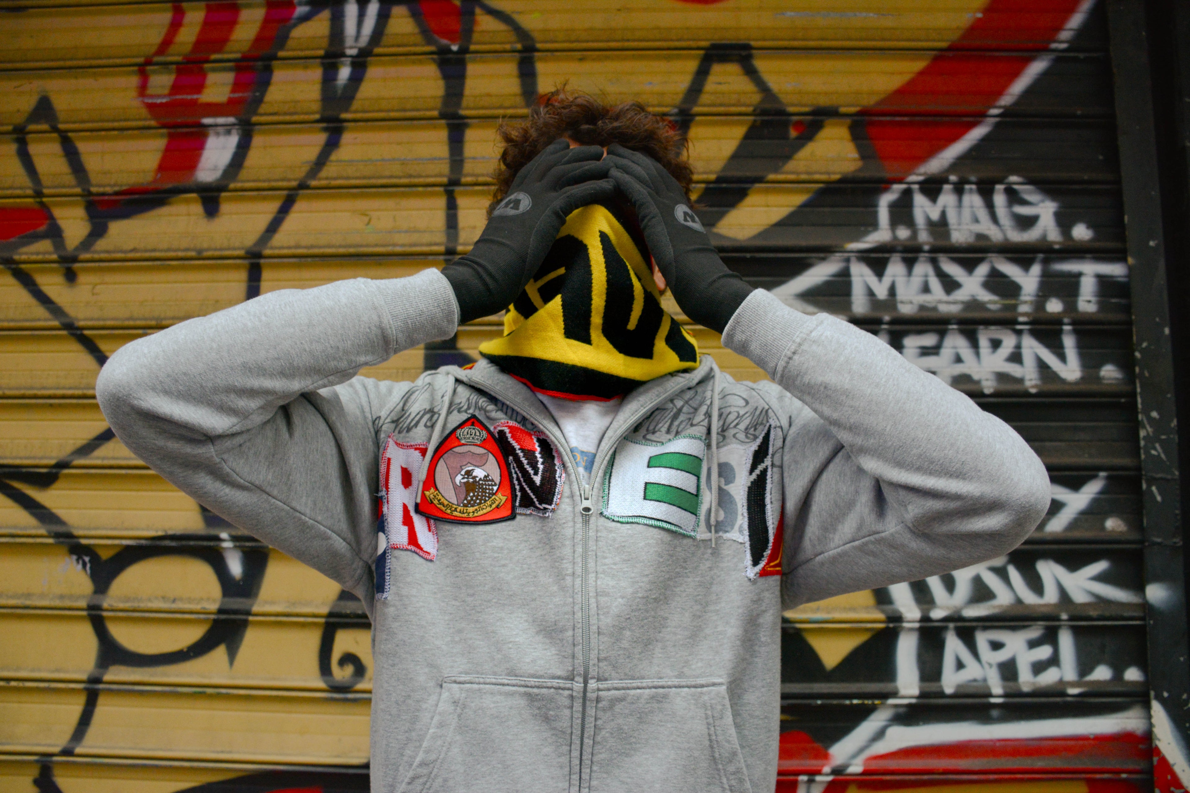 Black letters zip patchwork hoodie